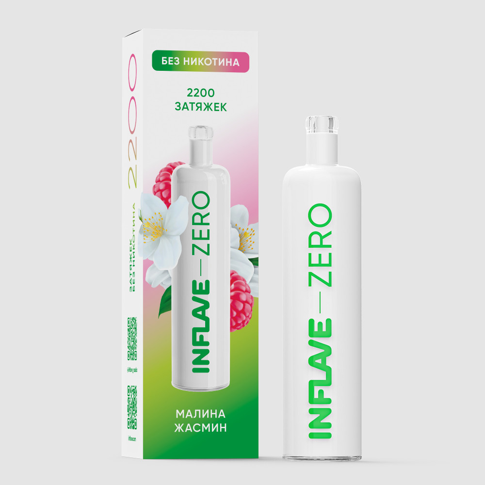 Электронная сигарета Inflave Zero 2200 затяжек Малина Жасмин со вкусом терпкого вкуса жасмина и насыщенная сладость малины.